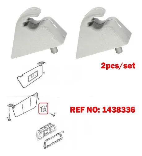 Juego de 2 clips de visera en color gris, diseñados como repuesto directo para varios modelos Opel, Vauxhall y Chevrolet. Fabricados en plástico resistente, ofrecen durabilidad, ajuste preciso y fácil instalación.