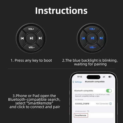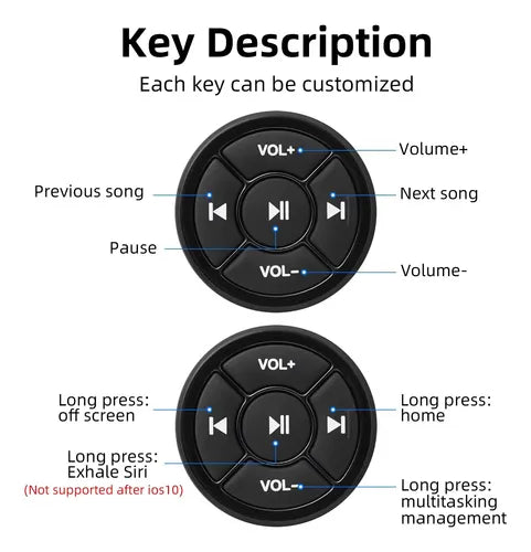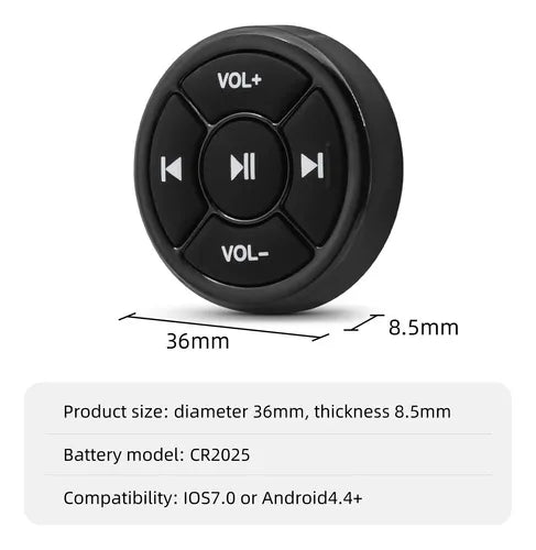 Botón de control remoto inalámbrico para volante de coche, compatible con Android e iOS. Permite manejar música, volumen y llamadas sin quitar las manos del volante, aumentando la seguridad y comodidad al conducir.