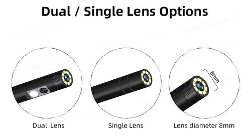 - 1x Cámara endoscópica de 10 m con lente dual.