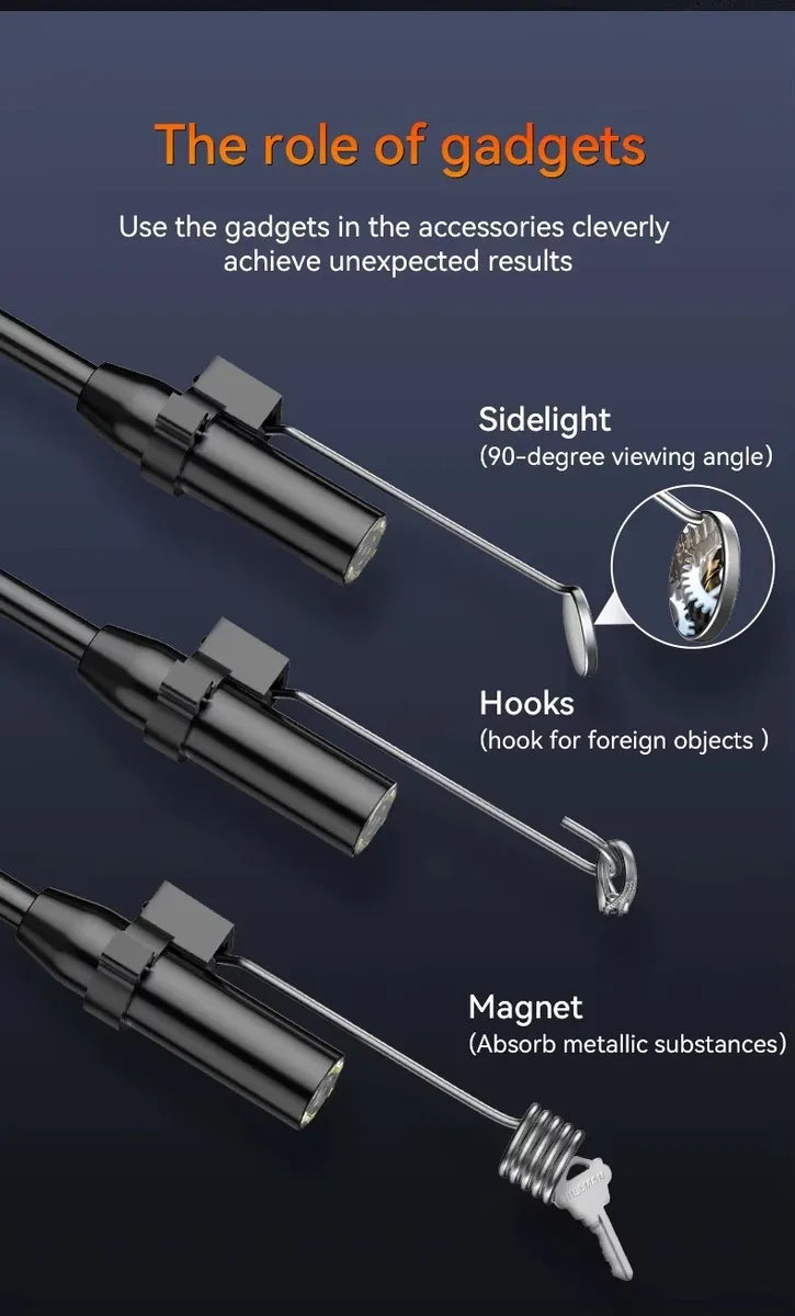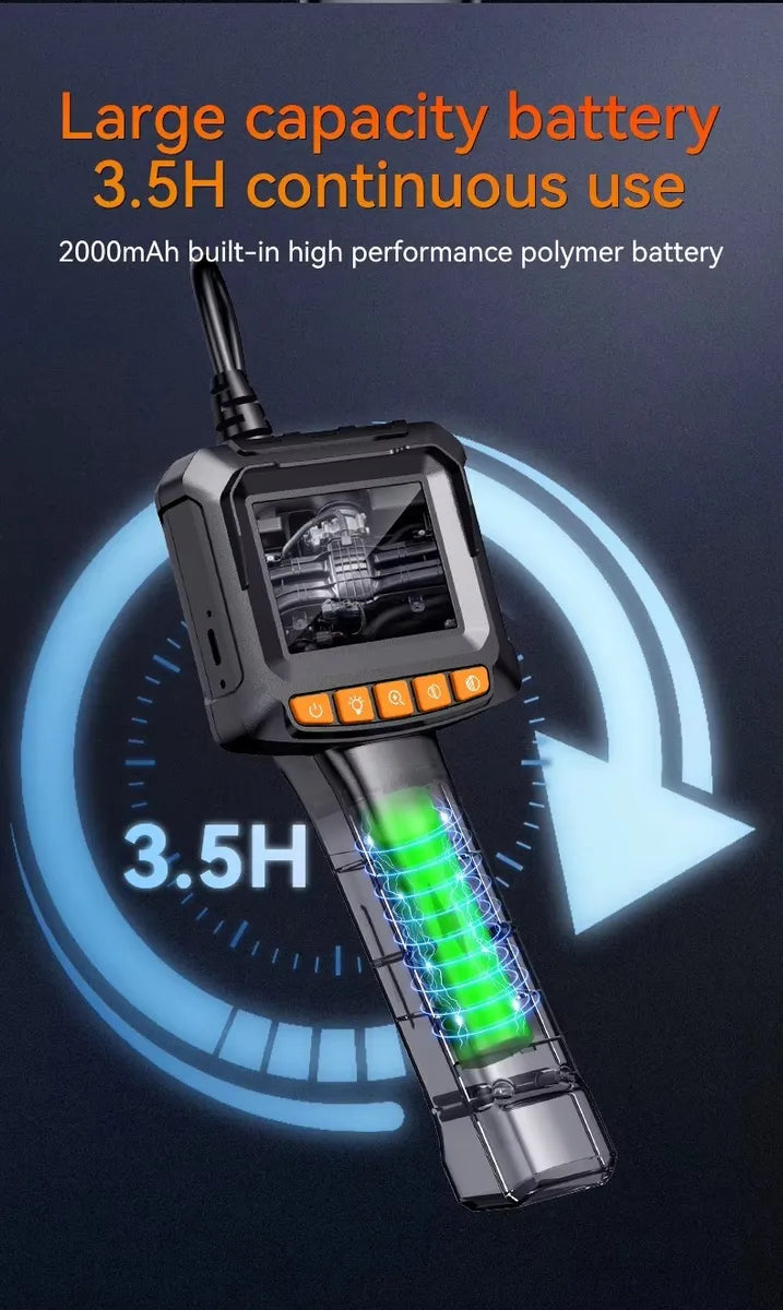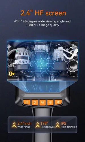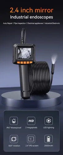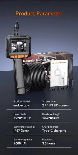 La cámara endoscópica industrial HD 1080P es la herramienta perfecta para inspección automotriz, industrial, sanitaria o doméstica. Con pantalla IPS de 2,4”, cable rígido de 10 metros y lente de 8 mm, te permite explorar con precisión motores, tuberías y estructuras internas en tiempo real.