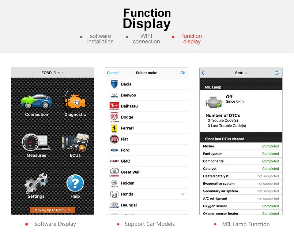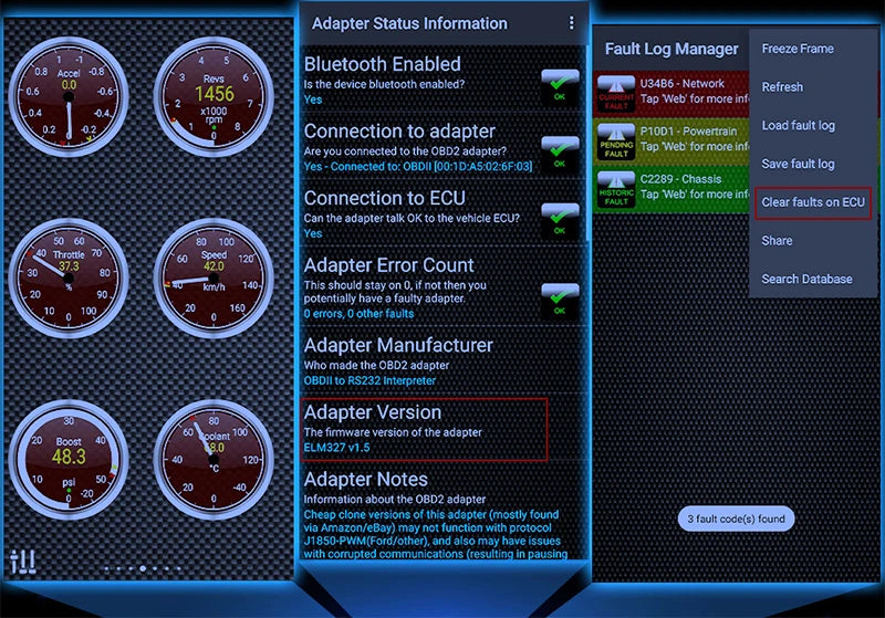 - Monitoreo de datos en vivo: RPM, velocidad, temperatura, presión de combustible, flujo de aire, oxígeno, acelerador y más.