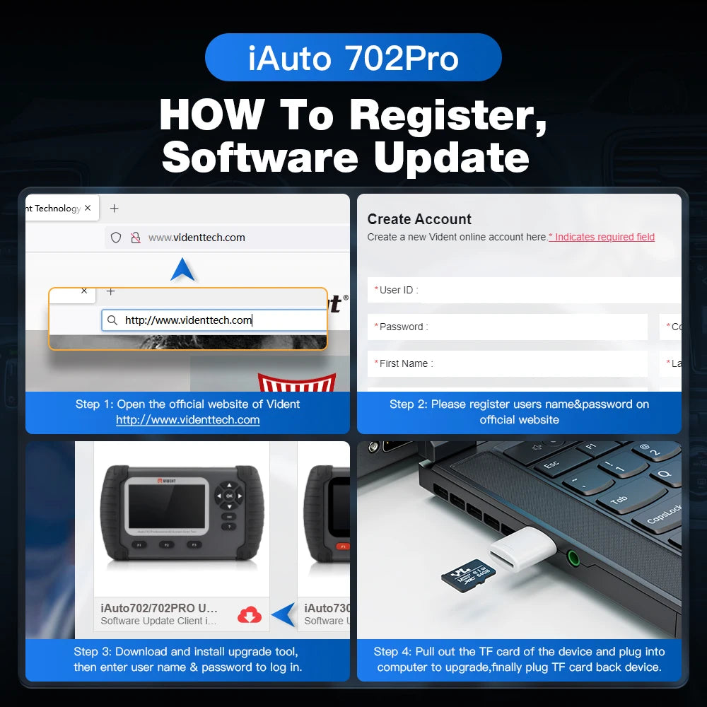 Escáner Automotriz OBD2 ABS/SRS con 39 Funciones Especiales – Vident iAuto702 Pro