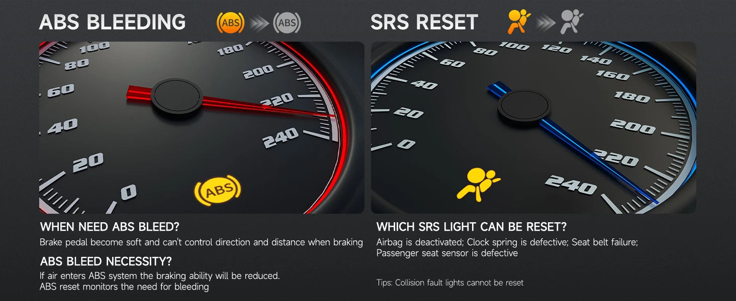 - Diagnóstico completo de motor, ABS y airbag (SRS).