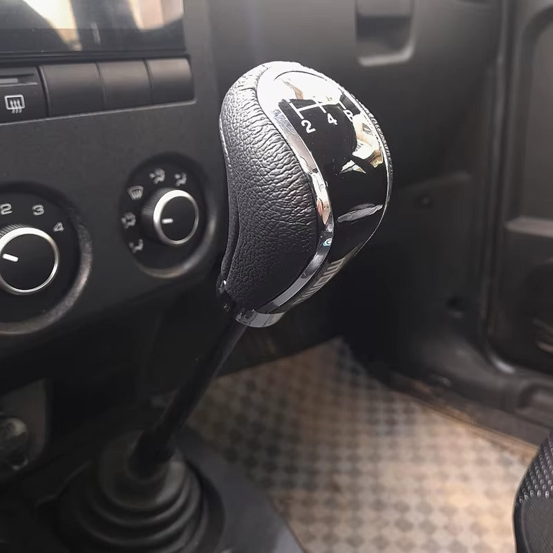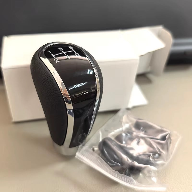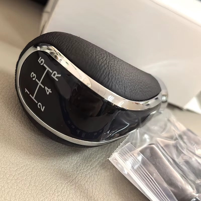 Actualiza tu vehículo con esta perilla universal de cambio de 5 velocidades, fabricada en cuero negro, aluminio y ABS, combinando resistencia, estilo y confort.