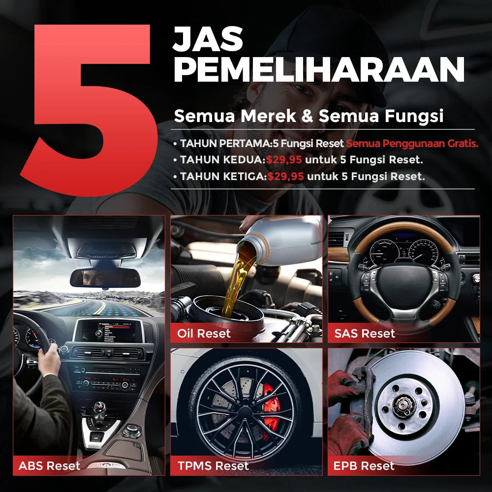 - 5 funciones de reinicio gratuitas (1 año): aceite, EPB, SAS, TPMS y ABS (renovable por solo $29,95 USD/año).