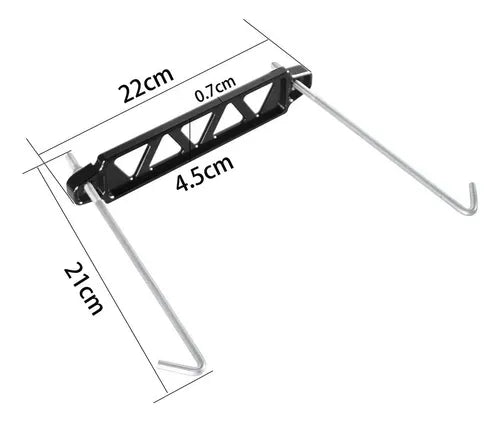 - Material: Aluminio 6061 CNC anodizado (barra) + acero inoxidable 18-8 (ganchos en J)